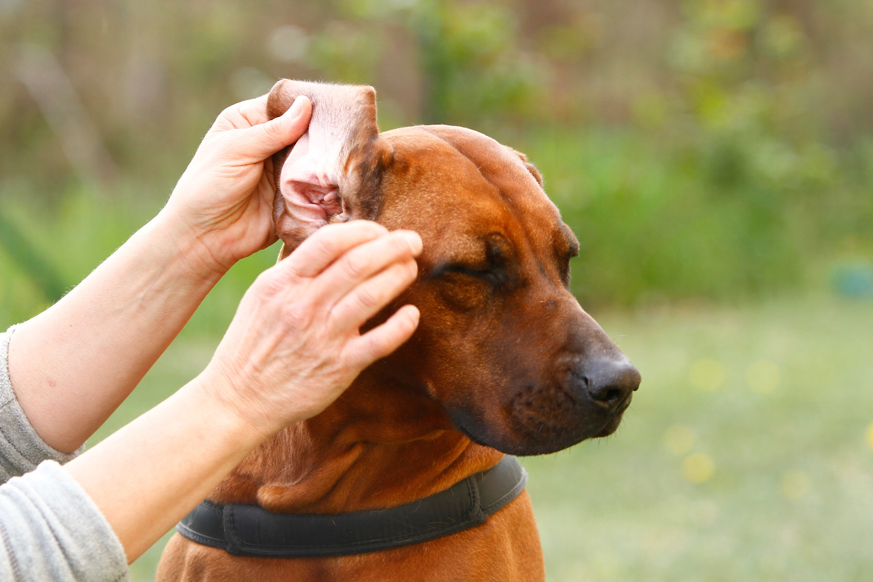 Controlla periodicamente le orecchie del tuo cane, il canale auricolare deve essere pulito ed asciutto soprattutto nei cani con orecchie pendenti come il Rhodesian Ridgeback, al fine di evitare possibili infezioni. Esistono diversi prodotti per la pulizia delle orecchie, chiedi consiglio al tuo veterinario.